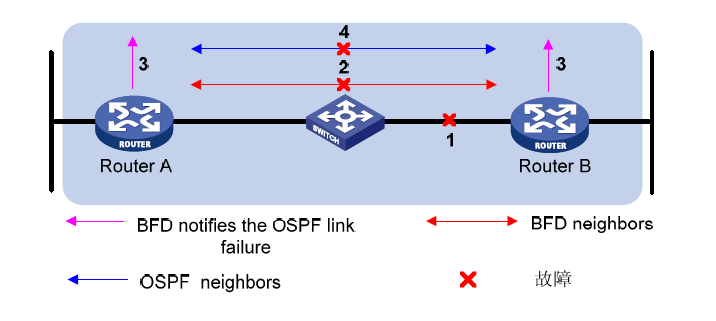 (3) BFD通知本地OSPF进程BFD邻居不可达。
