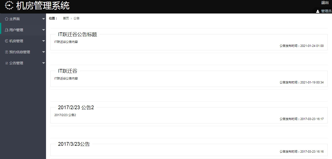 - 对公告信息进行管理。