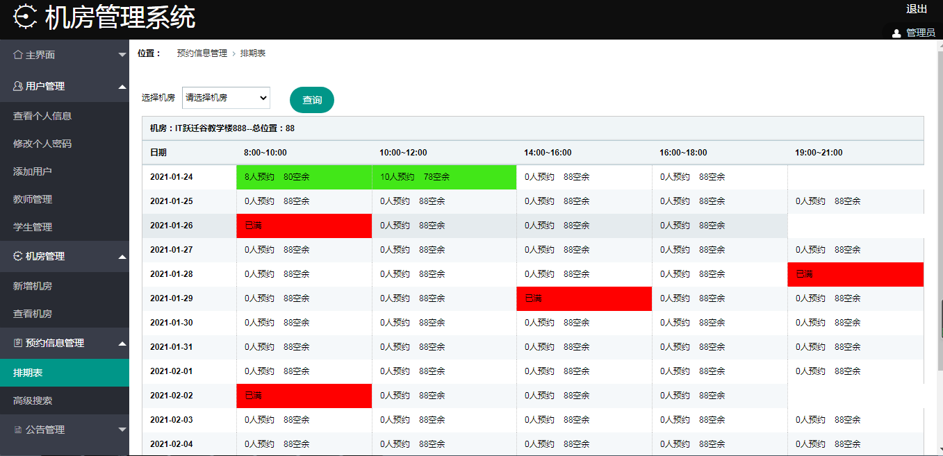 - 查看实验室机房排期表。