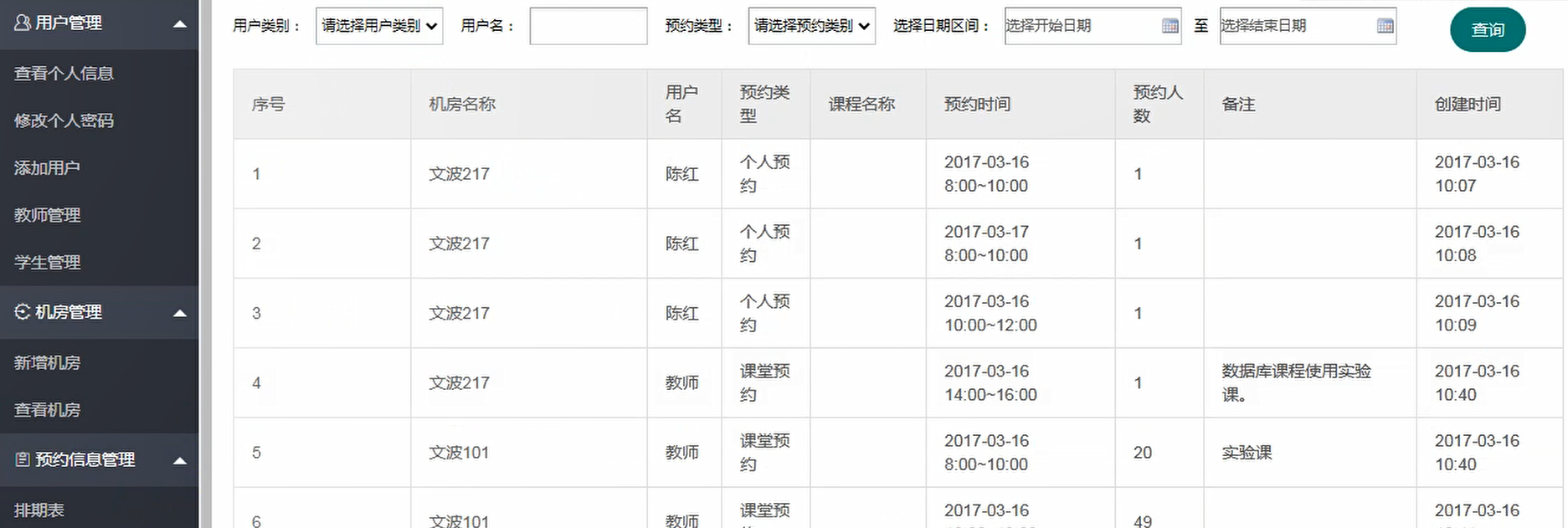- 个人预约实验室机房;