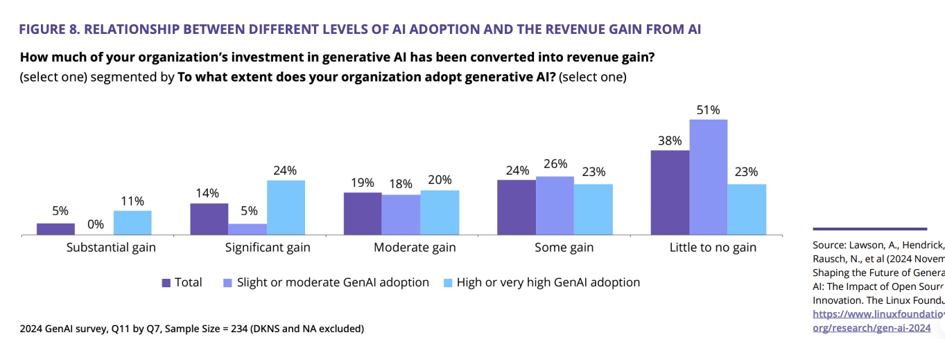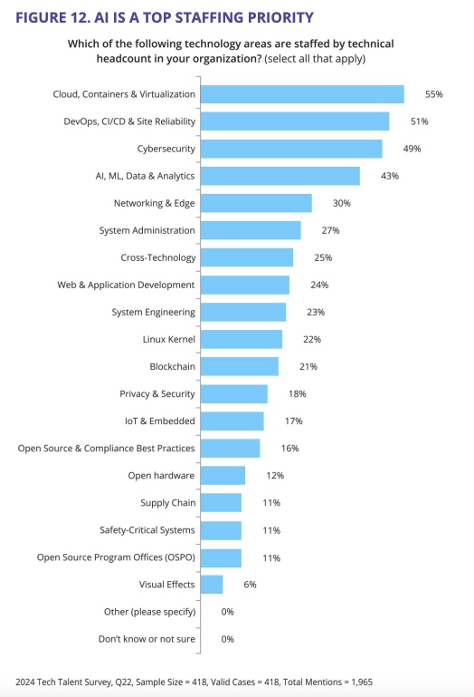 - AI采用日趋普及,且开源技术在AI采用中占据重要比例。