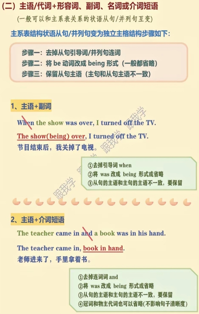 Linguistics-English- 独立主格结构 + that从句系列: 主语 + 宾语 + 表语 + 同位语 + 定语