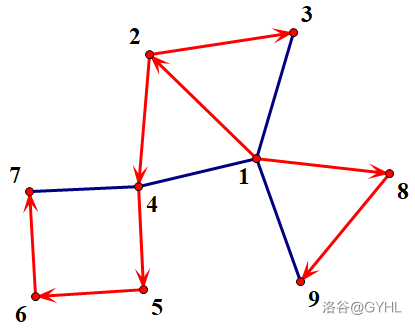 - 弱连通:对于有向图的两点 \(u, v\),若将有向边改为无向边后 \(u, v\) 连通,则称 \(u, v\) 弱连通。