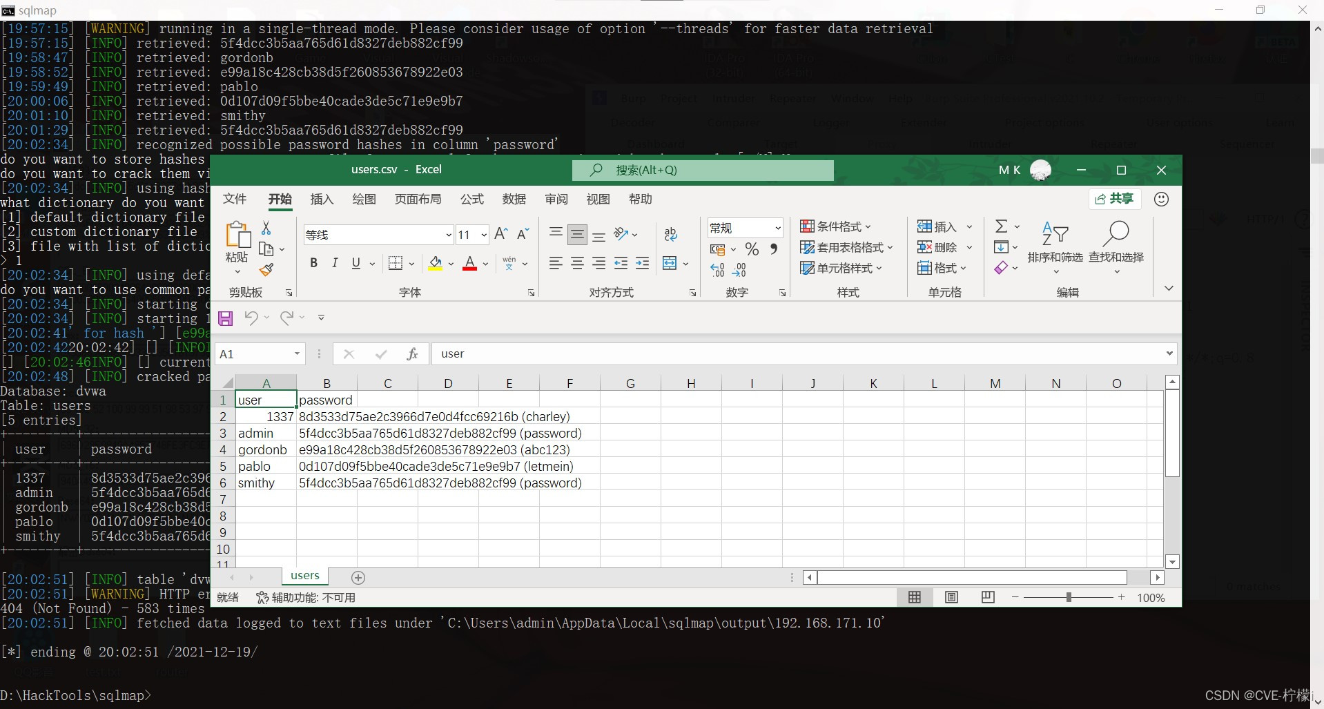 存在user为admin和password为5f4dcc3b5aa765d61d8327deb882cf99(password)的字段。