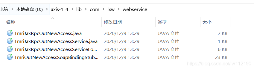 java -cp mail.jar;saaj.jar;jaxrpc.jar;commons-discovery-0.2.jar;commons-logging-1.0.4.jar;axis.jar;activation.jar;wsdl4j-1.5.1.jar org.apache.axis.wsdl.WSDL2Java D:\TmriOutNewAccess.xml -p com.lxw.webservice