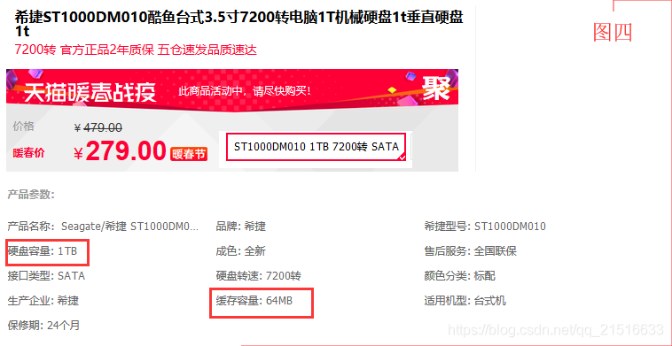 | 希捷Seagate | ST1000DM010 | 1TB | 64MB | ¥279 |