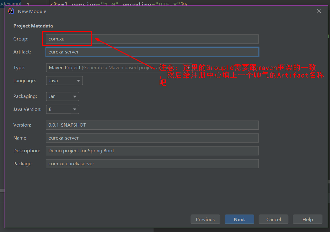 3)填写正确的Group和给注册中心想一个帅气的Artifact,点击Next