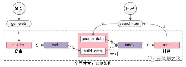 做全网搜索的公司毕竟是少数,绝大部分公司要实现的其实只是一个站内搜索,站内搜索引擎的宏观架构和全网搜索引擎的宏观架构有什么异同?
