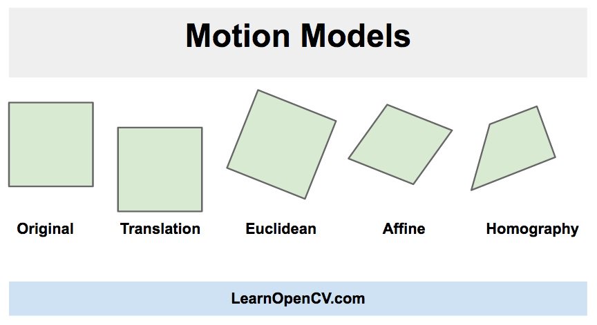 如上图所示,在欧几里德运动模型中,图像中的正方形可以转换为具有不同大小,形状位置的任何其他四方形。它比仿射和单应变换更具限制性,但足以用于运动稳定,因为视频的连续帧之间的相机移动通常很小。