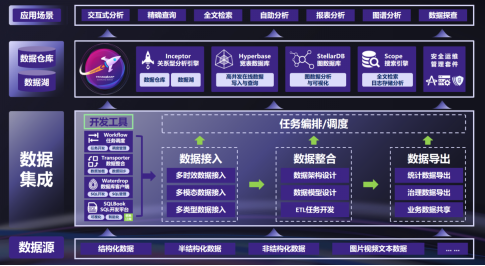 丰富的组件支持:内置关系型分析引擎Inceptor、宽表数据库Hyperbase等核心组件,以及多模数据监控软件AquilaInsight、安全管理软件Guardian、星环数据库开发工具Waterdrop等辅助工作,提供组件运维监控、权限管理到SQL开发的一站式能力。