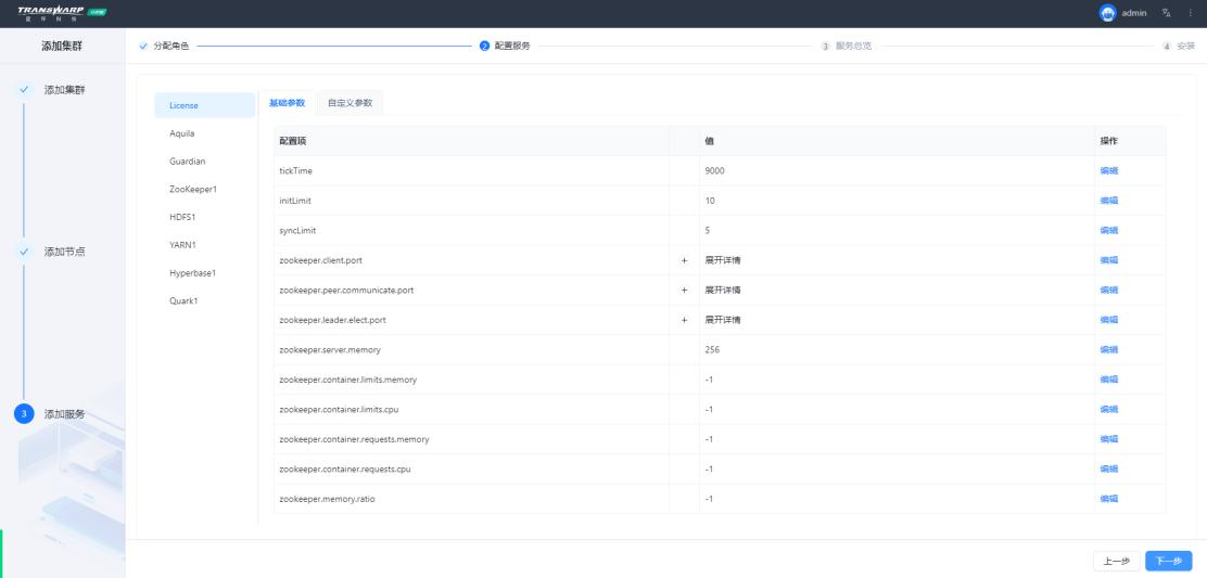 c. 该步骤提供了一些默认的配置项以及参数项,您可基于自身需求进行修改,也可直接点击下一步。但是为了后续安装服务的顺利,请务必确保服务的端口与您当前环境上正在运行的其他产品没有冲突