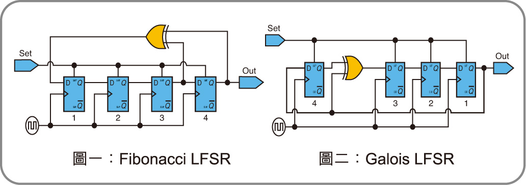 - Fibonacci LFSRs 斐波那契型