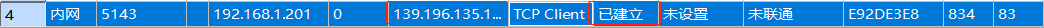 - 先把设备的工作模式改为TCP客户端,目的IP改为上图中的域名对应的IP,可以通过Ping域名来查到域名对应的IP。