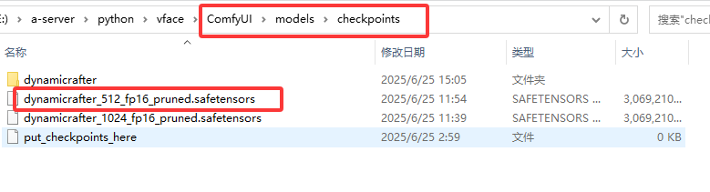 2:模型下载:https://huggingface.co/Kijai/DynamiCrafter_pruned/tree/main