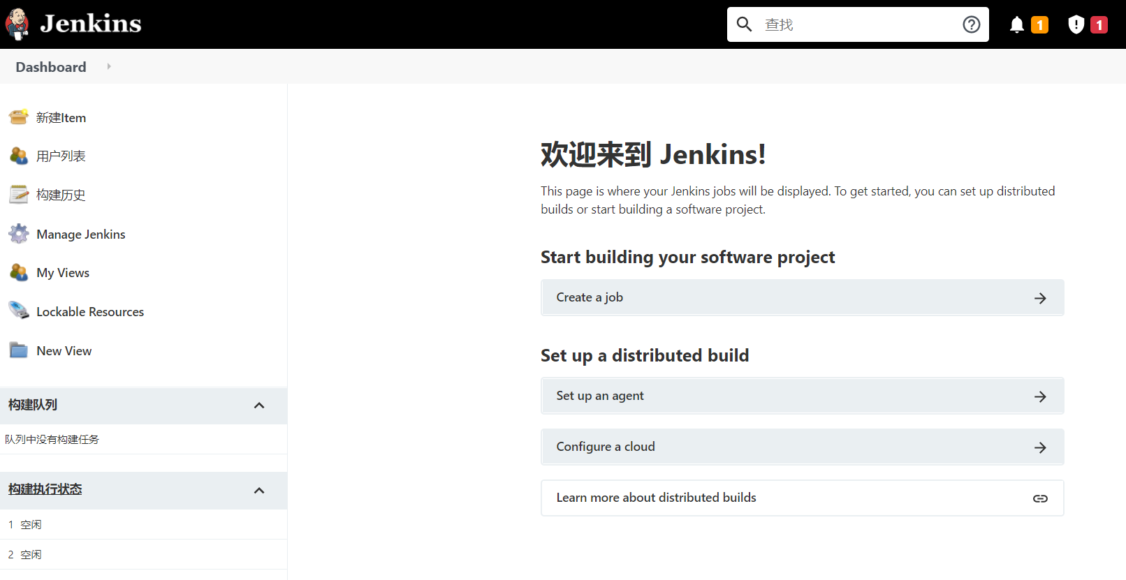 根据提示,输入管理员密码,,然后安装推荐插件,等待安装完毕后,然后设置登录的用户名和密码,就可以进入jenkins的页面了:
