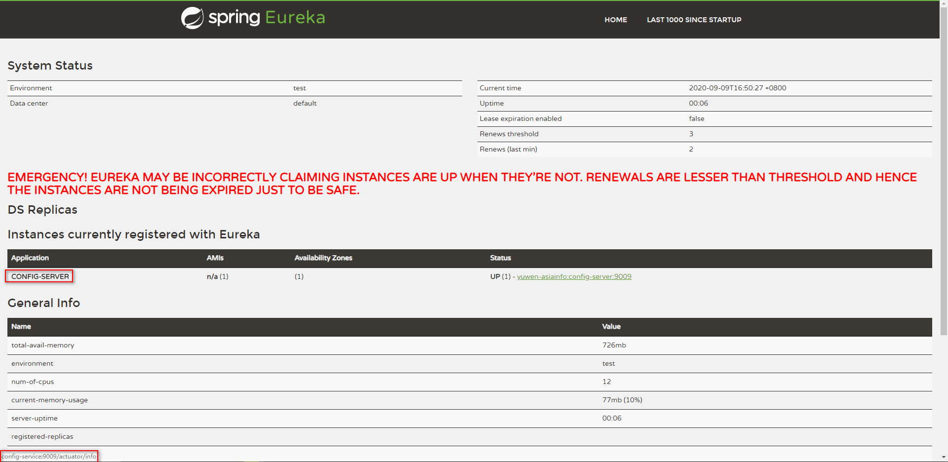 2020-09-09 16:43:58.925 INFO 11216 --- [nfoReplicator-0] com.netflix.discovery.DiscoveryClient : DiscoveryClient_CONFIG-SERVER/yuwen-asiainfo:config-server:9009 - registration status: 204