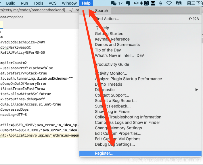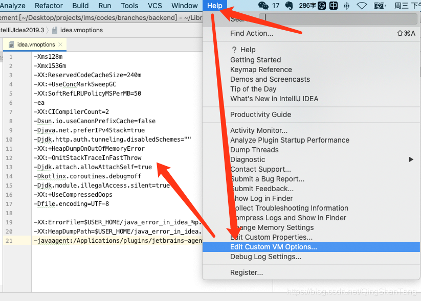 点击菜单栏 Help -> Edit Custom VM Options