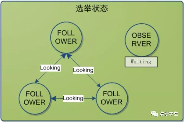 2、集群模式:至少三台机器以上 具有leader选举功能和数据同步功能 状态:一个leader,多个follower