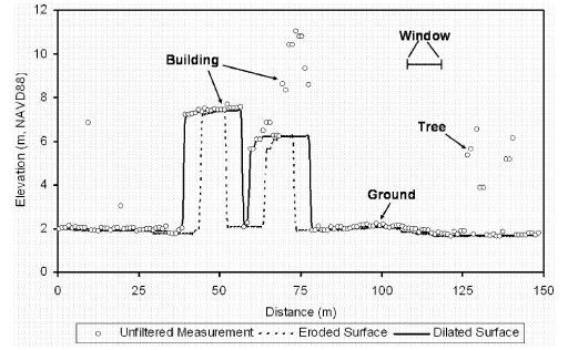 建筑物和土包有一个巨大的区别,建筑物往往相对比较陡峭,而土包却是变化比较平缓的。这个可以作为一个判据,用于判断物体是否需要被腐蚀,也作为窗收敛的判据。