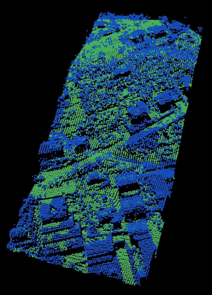 航空测量是对地形地貌进行测量的一种高效手段。生成地形三维形貌一直是地球学,测量学的研究重点。但对于城市,森林,等独特地形来说,航空测量会受到影响。因为土地表面的树,地面上的房子都认为的改变了地貌,可以认为是地貌上的噪声点。设计一种有效的手段去除地面噪声对地形测量的影响显得非常重要。这种工作可以认为是一种特殊的点云分割,一般情况下点云分割的目标是去除地面,而这种方法需要在不使用地面平整假设的前提下获得地面。