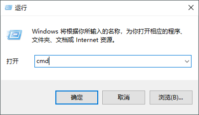 - 在命令面板输入cmd,点击确定,跳出命令行界面