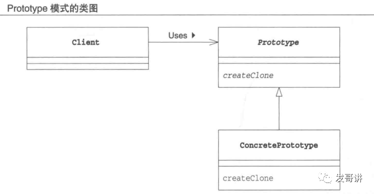 1、Prototype模式用于隔离类对象的使用者和具体类型(易变类)的之间的耦合关系,但是这些易变类必须拥有稳定的接口.