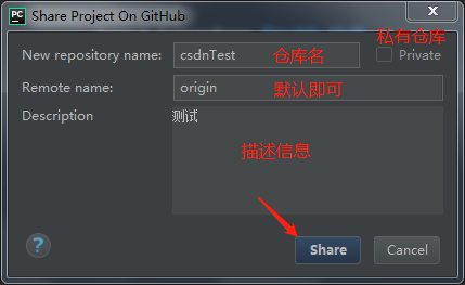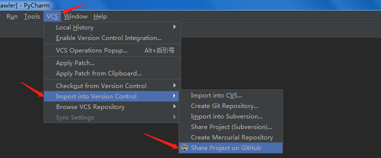 1.选择上方菜单栏VCS------Import inti Version Control--------Share Project on GitHub