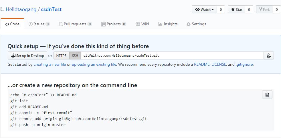 - 将本地的一个新项目上传到GitHub上新建的仓库中去