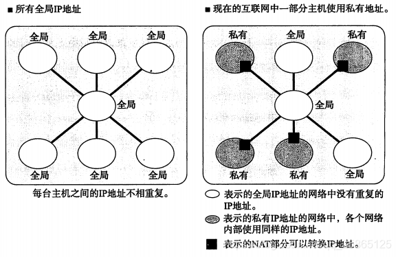 全局地址,私有地址 , 一种为解决IP地址不足而产生的技术。