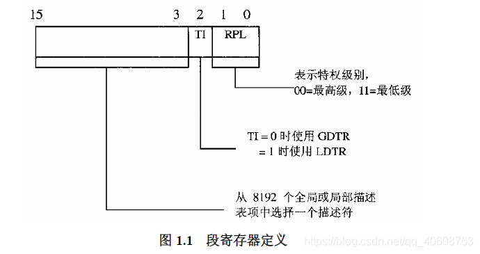 在80386CPU中增加了2个寄存器,全局性的段描述表寄存器GDTR,和局部性的段描述表寄存器LDTR。访问这两个寄存器的指令被设置为专有指令,起到了保护作用。段寄存器的高13为用作访问段描述表中具体描述结构的下标。