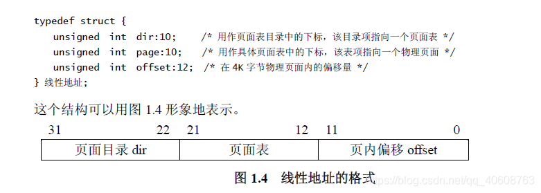 由于页式管理的引入,对32位线性地址有了新的解释(以前就是物理地址):