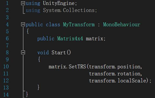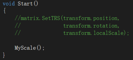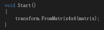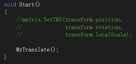 然后回到“MyTransform”脚本的Start函数中调用工具类里的方法完成变换矩阵的各项操作: