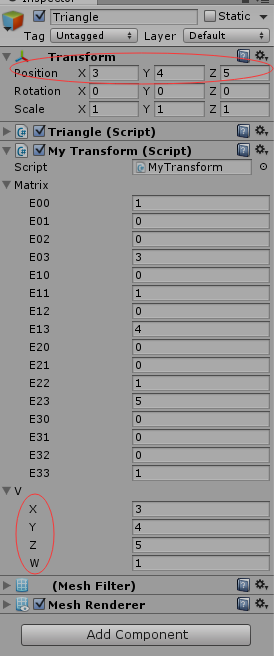 } public class MyTransform : MonoBehaviour { public Axle axle; public Vector4 v4; public Matrix4x4 matrix; // Use this for initialization