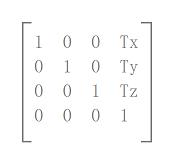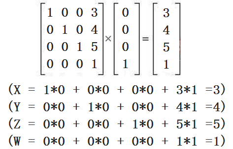 然后找到矩阵中对应的平移的方向“Tx”、“Ty”、“Tz”,在代码中,我让物体向 X 轴方向平移3个单位、Y 轴方向平移4个单位、Z 轴方向平移5个单位。