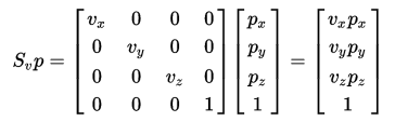PS:当各个轴上的缩放因子相等时,即:Sx=Sy=Sz 时,则为均匀缩放。