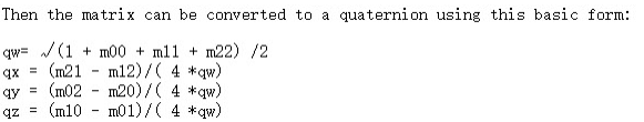 接下来的代码就是做矩阵转为四元数的操作,具体请看下图中的公式: