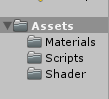 为了便于查找,让我们在 Assets 目录下新建三个文件夹,分别命名为“Scripts”、“Shader”、“Materials”,这个不用解释,大伙们都看得懂吧。如下图所示: