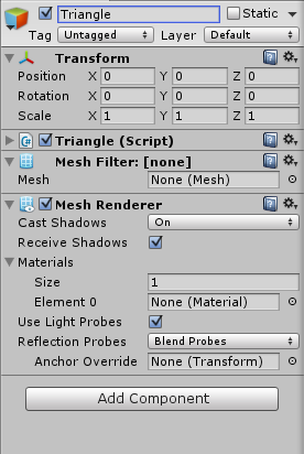 mesh.triangles = triangle; var meshRender = GetComponent<MeshRenderer> ();