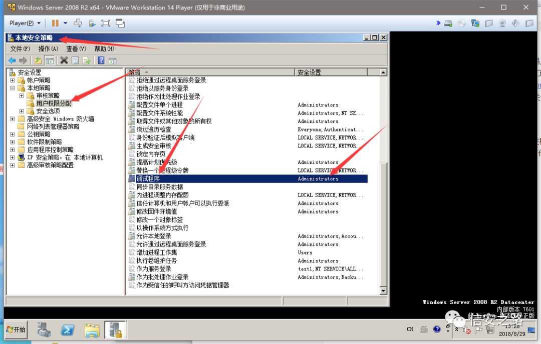 在 windows 里,调试权限可以用来调试进程,甚至是调试内核。对于 mimikatz 来说,通常套路来说,他想去读取内存就得获取调试权限,然后去打开进程。默认情况下,本地管理员组是由这个权限的。但是,除非管理员是个程序员,一般他应该用不到这种权限。