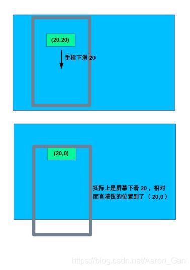 我们错误习惯性思维是:移动方向指的就是内容区域,也就是画布(报纸)的移动方向,我们以为它是跟随我们的手指移动方向移动的,当我们向下(向右)移动的时候,画布(报纸)是向左下角移动。