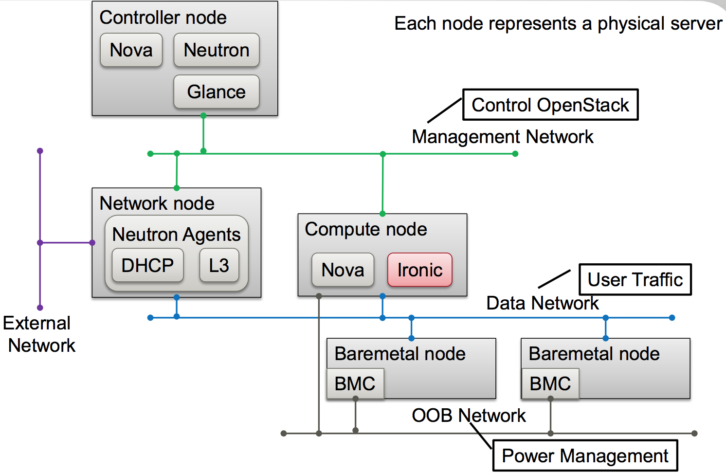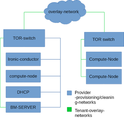 - Top of rack switch - we assume that the bare-metal server is physically connected to along with all other components (compute-node, ironic conductor-node etc…).