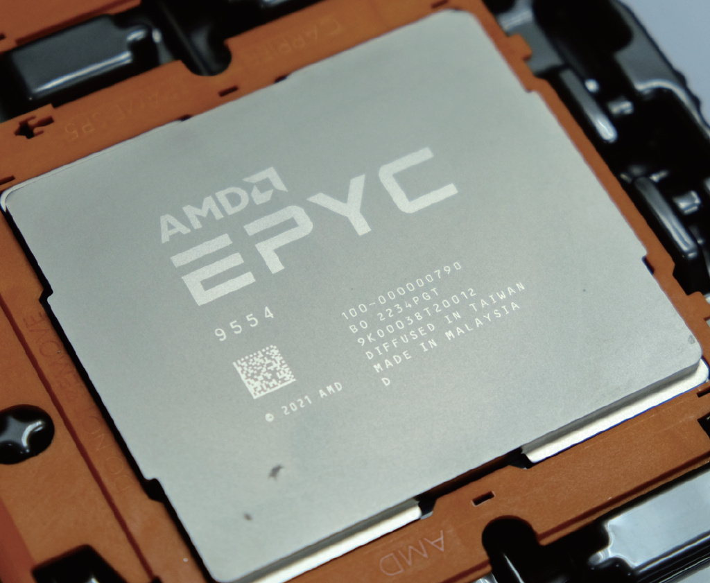 而第二款AMD EPYC 9554是一款兼具频率与核心数量的处理器,它采用64核心、128线程设计,能够满足各类服务器应用。之所以它的TDP热设计功耗与AMD EPYC 9654相同,原因就在于它拥有更高的基准频率,从 EPYC 9654的2.4GHz提升到3.1GHz,全核心加速频率也从3.55GHz提升到3.75GHz。它既适用于那些对频率有较高依赖的应用,也能满足各类多线程计算应用的需求。