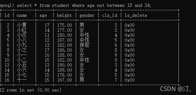 select * from student where (age between 18 and 34) and gender=2 order by height desc;