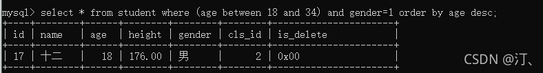 select * from student where (age between 18 and 34) and gender=1 order by age desc;