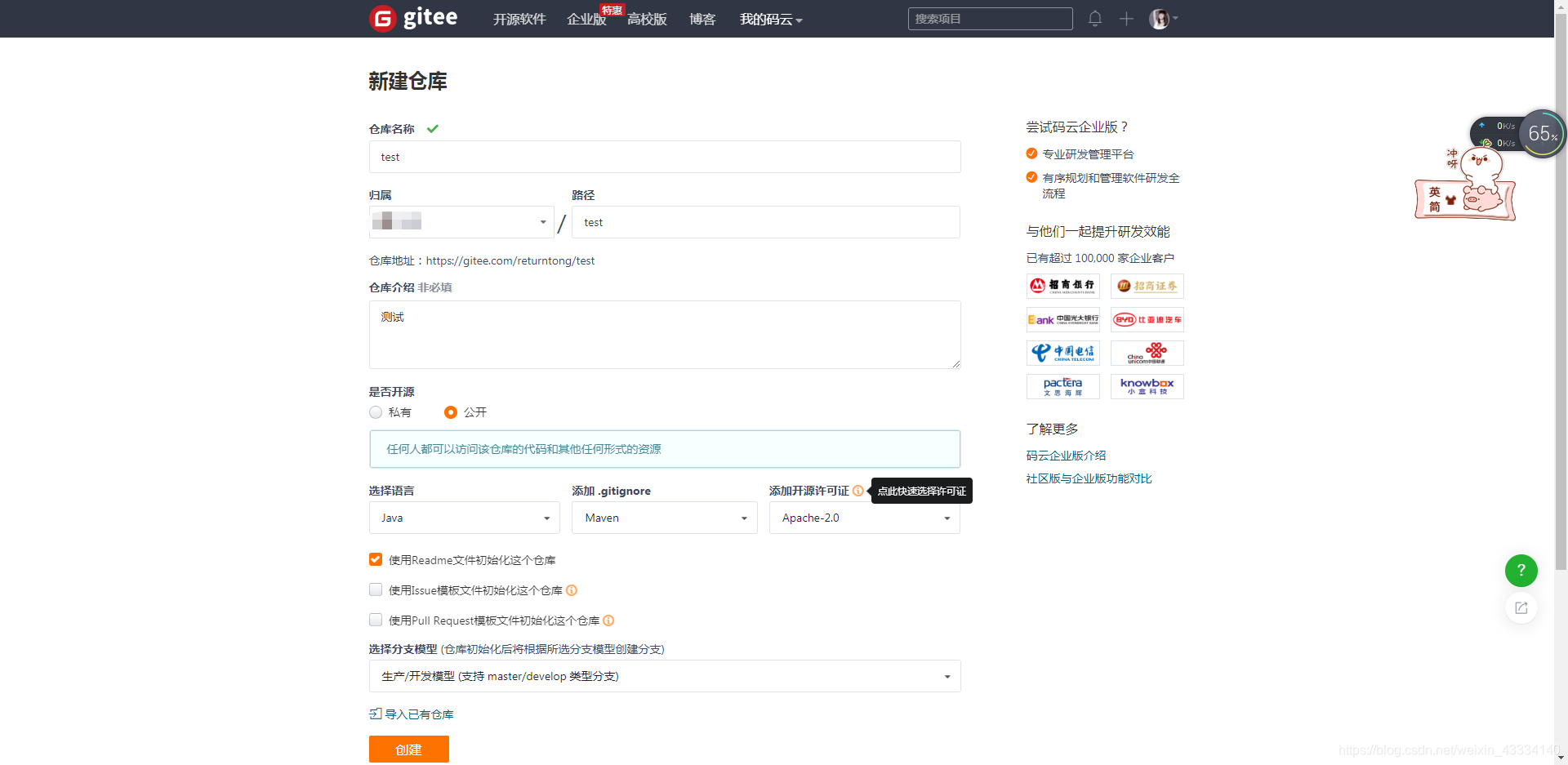 利用码云生成项目
