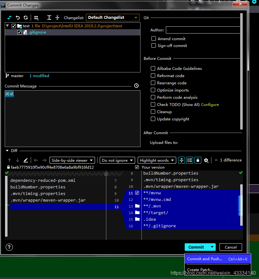 输入commit message,点击commit and push 提交到码云
