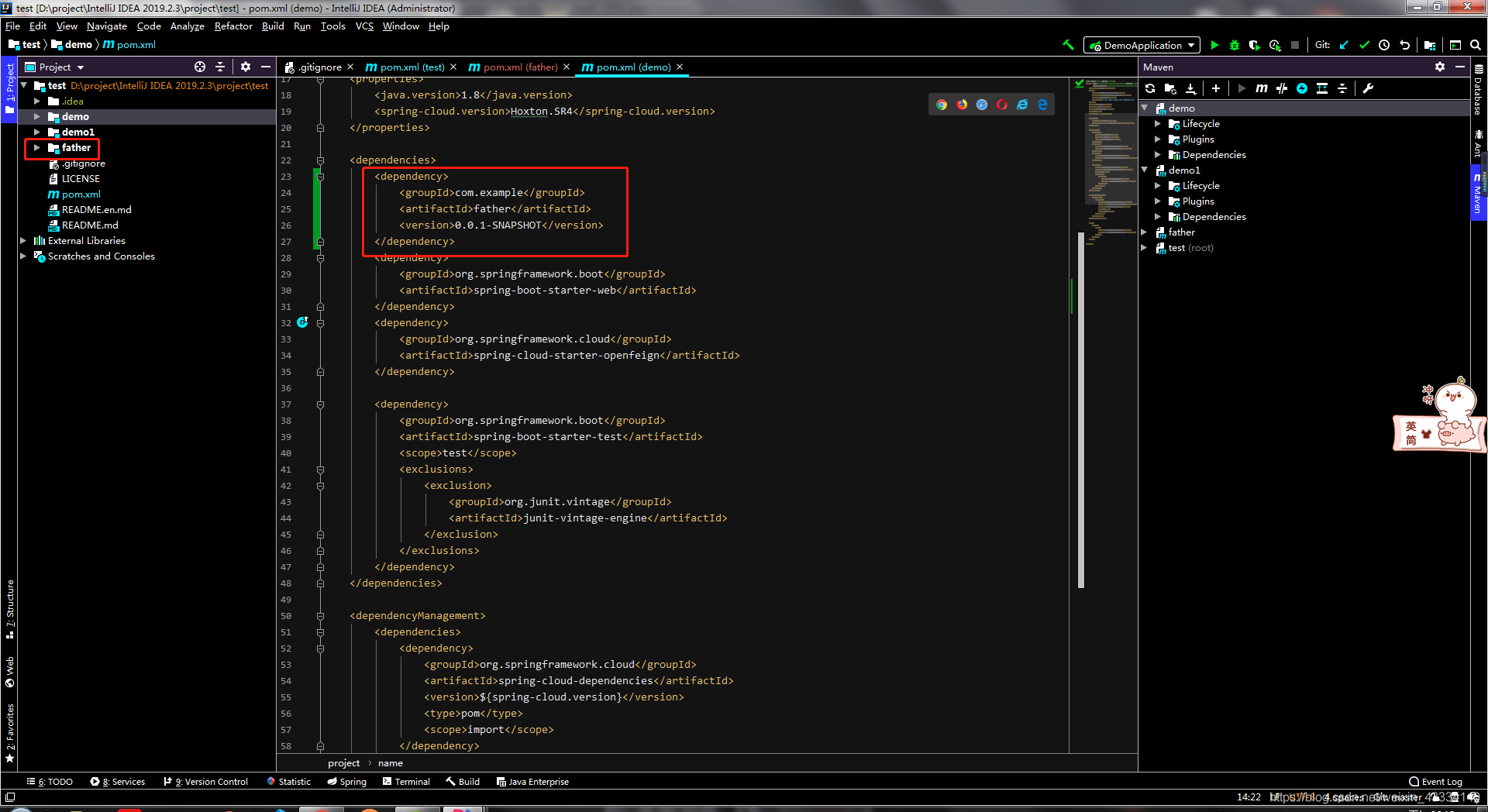 然后将father当成依赖,添加到所有微服务pom文件