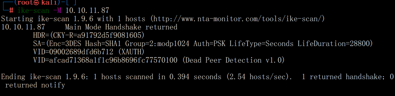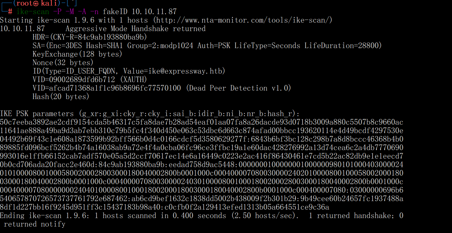 ike-scan -P -M -A -n fakeID 10.10.11.87