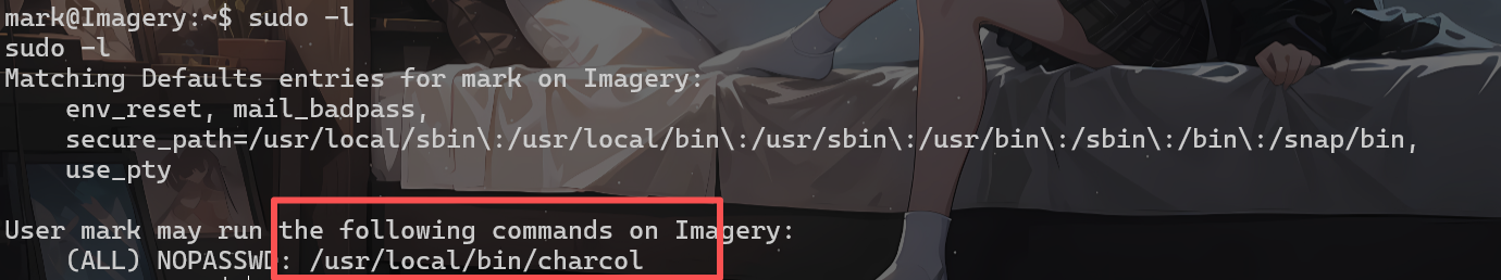 Security Warning: Charcol does NOT validate the safety of the --command. Use absolute paths.