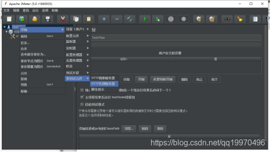 - 在测试计划上,右击添加“非测试原件”->“HTTP代理服务器”,并设置端口号
